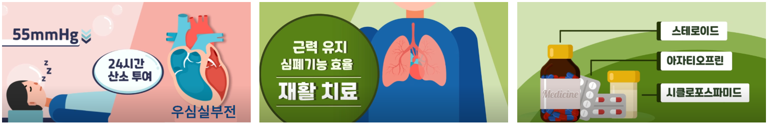 A4. 면역억제제 및 항염증 약물, 산소 치료, 물리치료, 폐 이식 등이 있습니다.