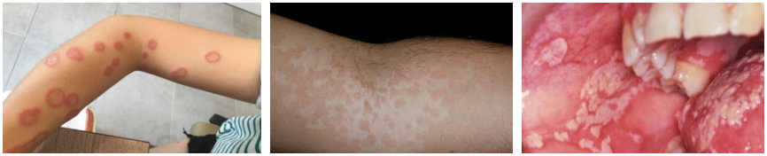 - 칸디다증: 구강, 질, 피부 등에서 발생할 수 있으며, 면역력이 떨어졌을 때 흔하게 감염됩니다. 발진, 가려움증, 통증 등의 증상을 보일 수 있습니다.